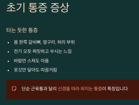 ๋Œ€์ƒํฌ์ง„์˜ ๊ฐ€์žฅ ์ฒซ ๋ฒˆ์งธ ๊ฒฝ๊ณ ๋Š” ๋‹จ์—ฐ ํƒ€๋Š” ๋“ฏํ•œ ํ†ต์ฆ์ด์—์š”. ์ด ํ†ต์ฆ์€ ๋ณดํ†ต ๋ชธ ํ•œ์ชฝ, ํŠนํžˆ ๊ฐˆ๋น„๋ผˆ ๋ถ€์œ„๋‚˜ ์˜†๊ตฌ๋ฆฌ, ํ—ˆ๋ฆฌ์—์„œ ์‹œ์ž‘๋˜๋Š”๋ฐ, ๋งˆ์น˜ ์ „๊ธฐ๊ฐ€ ์˜ค๋“ฏ ์ฐŒ๋ฆฟํ•˜๊ฑฐ๋‚˜ ์‘ค์‹œ๋Š” ๋А๋‚Œ์ด ๋“ค์ฃ . ์ดˆ๋ฐ˜์—๋Š” "๊ทธ๋ƒฅ ๊ทผ์œกํ†ต์ธ๊ฐ€?" ์‹ถ์–ด์„œ ๋Œ€์ˆ˜๋กญ์ง€ ์•Š๊ฒŒ ๋„˜๊ธฐ๊ธฐ ์‰ฌ์šด๋ฐ์š”. ๋ฐ”๋žŒ์ด ์Šค์น˜๊ธฐ๋งŒ ํ•ด๋„ ์•„ํ”„๊ณ , ์˜ท๊นƒ๋งŒ ๋‹ฟ์•„๋„ ๋”ฐ๋”๊ฑฐ๋ฆฌ๋Š” ๊ฒŒ ํŠน์ง•์ž…๋‹ˆ๋‹ค. ๋‹จ์ˆœํžˆ ์•„ํ”ˆ ๊ฒŒ ์•„๋‹ˆ๋ผ, ์‹ ๊ฒฝ์„ ๋”ฐ๋ผ ํผ์ง€๋Š” ํ†ต์ฆ์ด๋ผ๋Š” ๊ฒŒ ํฐ ํžŒํŠธ์˜ˆ์š”.
