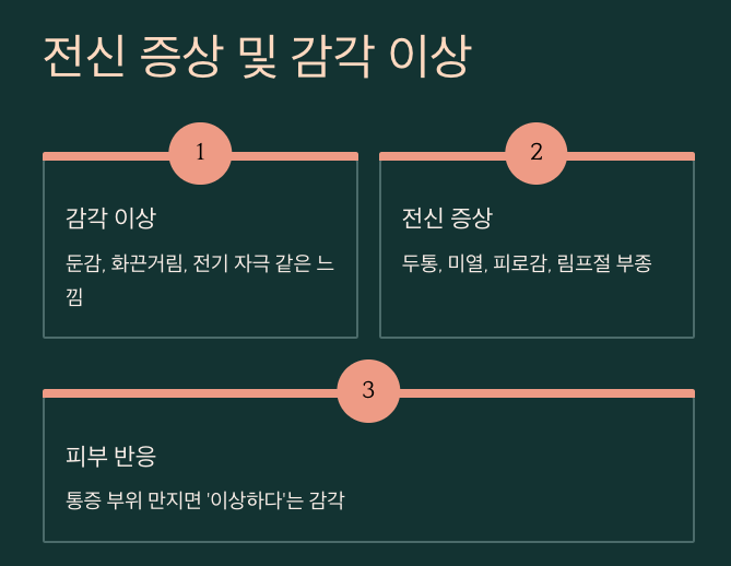 ๊ฐ๊ฐ ์ด์ƒ ๋‘”๊ฐ, ํ™”๋ˆ๊ฑฐ๋ฆผ, ์ „๊ธฐ ์ž๊ทน ๊ฐ™์€ ๋А๋‚Œ