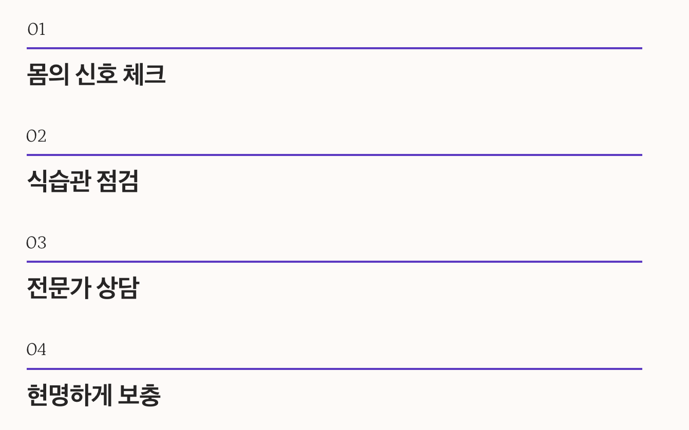 ๋ณดํต ์ต์ ๋ช ์ฃผ ์ด์์ ๊พธ์คํ ์ญ์ทจํด์ผ ๋ณํ๋ฅผ ๋๋ผ๋ ๊ฒฝ์ฐ๊ฐ ๋ง์ต๋๋ค. ๋จ๊ธฐ๊ฐ ํจ๊ณผ๋ณด๋ค๋ ์ํ์ต๊ด ๊ฐ์ ์ ํ ๋ถ๋ถ์ผ๋ก ์ ๊ทผํ๋ ๊ฒ ํ์ค์ ์ ๋๋ค.