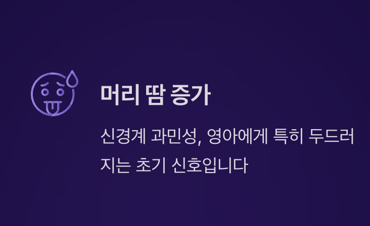 | ์ ๊ฒฝ๊ณ | ๋จธ๋ฆฌ ๋ ์ฆ๊ฐ, ๊ณผ๋ฏผ์ฑ | ์์์๊ฒ ํนํ ๋๋๋ฌ์ง |
