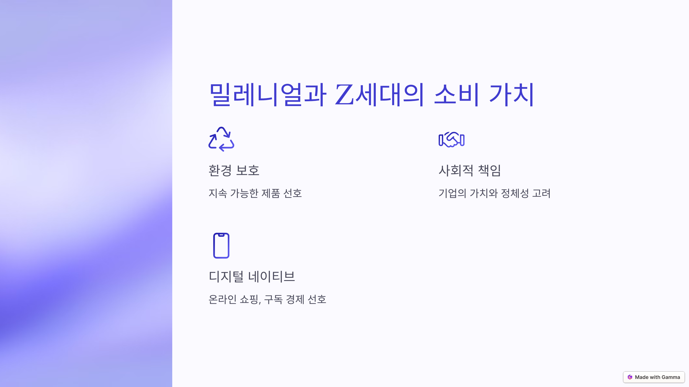 ๋ฐ๋ ๋์ผ ์ธ๋์ Z์ธ๋๋ ์๋น์์ ๊ณผ๊ฑฐ ์ธ๋์๋ ๋ค๋ฅธ ๊ฐ์น๋ฅผ ์ค์ํฉ๋๋ค. ํ๊ฒฝ ๋ณดํธ, ์ฌํ์ ์ฑ