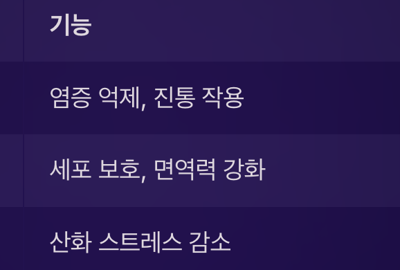 | ์ฑ๋ถ๋ช | ๊ธฐ๋ฅ |