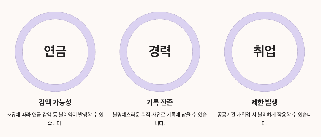 ํŠนํžˆ ์—ฐ๊ธˆ๊ณผ ๊ฒฝ๋ ฅ ๋ถ€๋ถ„์€ ๋งŽ์€ ๋ถ„๋“ค์—๊ฒŒ ๋ฏผ๊ฐํ•œ ๋ฌธ์ œ๋ผ, ์‹ค์ œ ์ง๊ถŒ๋ฉด์ง ์‚ฌ์œ ๊ฐ€ ๋ฌด์—‡์ธ์ง€์— ๋”ฐ๋ผ ์˜ํ–ฅ๋„๊ฐ€ ์ƒ๋‹นํžˆ ๋‹ฌ๋ผ์ง‘๋‹ˆ๋‹ค. ์ง•๊ณ„์„ฑ ๋ฉด์ง์ด๋ผ๋ฉด ๋ถˆ์ด์ต์˜ ํญ์ด ๋” ์ปค์งˆ ์ˆ˜ ์žˆ๋‹ค๋Š” ์ ๋„ ๊ผญ ๊ธฐ์–ตํ•ด์•ผ ํ•ฉ๋‹ˆ๋‹ค.