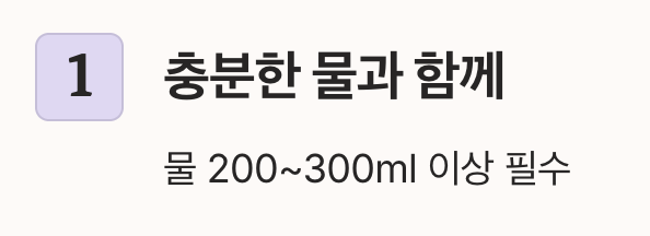 - ๋ฌผ 200~300ml ์ด์๊ณผ ํจ๊ป ์ญ์ทจํ๊ธฐ