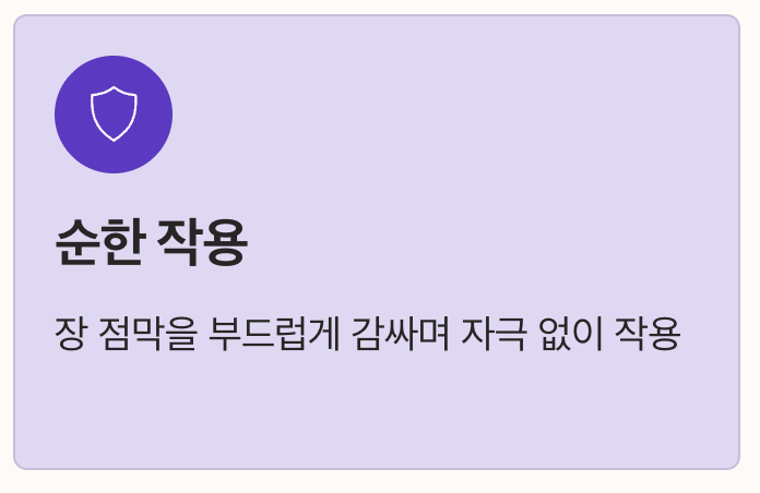 ์ฐจ์ ์ํผ์ ํต์ฌ์ ๋ฐ๋ก ์์ฉ์ฑ ์์ด์ฌ์ ์ ๋๋ค. ์ฅ ์ ๋ง์ ๋ถ๋๋ฝ๊ฒ ๊ฐ์ธ๋ฉด์ ๋๋ณ์ ์๋ถ ํจ๋์ ๋์ฌ ์ฃผ๊ณ , ์ฅ์ ๋ถ๋ด์ ์ฃผ์ง ์์ผ๋ฉด์๋ ์์ฐ์ค๋ฝ๊ฒ ๋ฐฐ๋ณ ํ๊ฒฝ์ ๋ง๋ค์ด ์ค๋๋ค. ๊ทธ๋์ ์๊ทน์ ์ธ ์ฑ๋ถ์ด ๋ค์ด๊ฐ ๋ณ๋น์ฝ์ด ๋ถ๋ด์ค๋ฌ์ด ๋ถ๋ค์๊ฒ ๋์์ผ๋ก ์ ํ๋๋ ๊ฒฝ์ฐ๊ฐ ๋ง์ต๋๋ค.