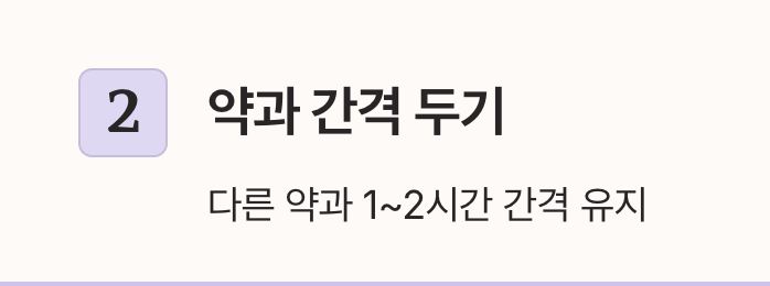 - ๋ค๋ฅธ ์ฝ๊ณผ๋ 1~2์๊ฐ ๊ฐ๊ฒฉ ๋๊ธฐ