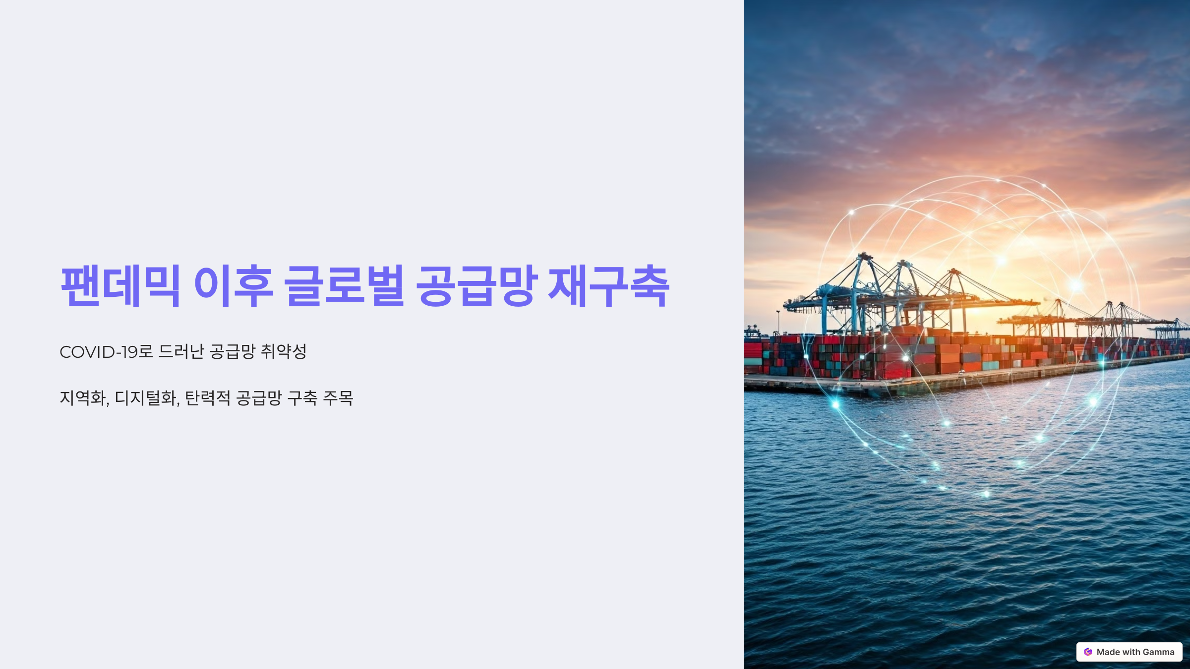 ํฌ๋ฐ๋ฏน ์ดํ์ ๊ธ๋ก๋ฒ ๊ณต๊ธ๋ง ์ฌ๊ตฌ์ถ์ ๋จ์ํ ํจ์จ์ฑ์ ํ๋ณตํ๋ ๊ฒ์ ๋์ด, ๋ฏธ๋์ ๋ถํ์ค์ฑ์ ๋๋นํ ์๋ก์ด ๊ตฌ์กฐ๋ฅผ ๊ตฌ์ถํ๋ ๊ณผ์ ์