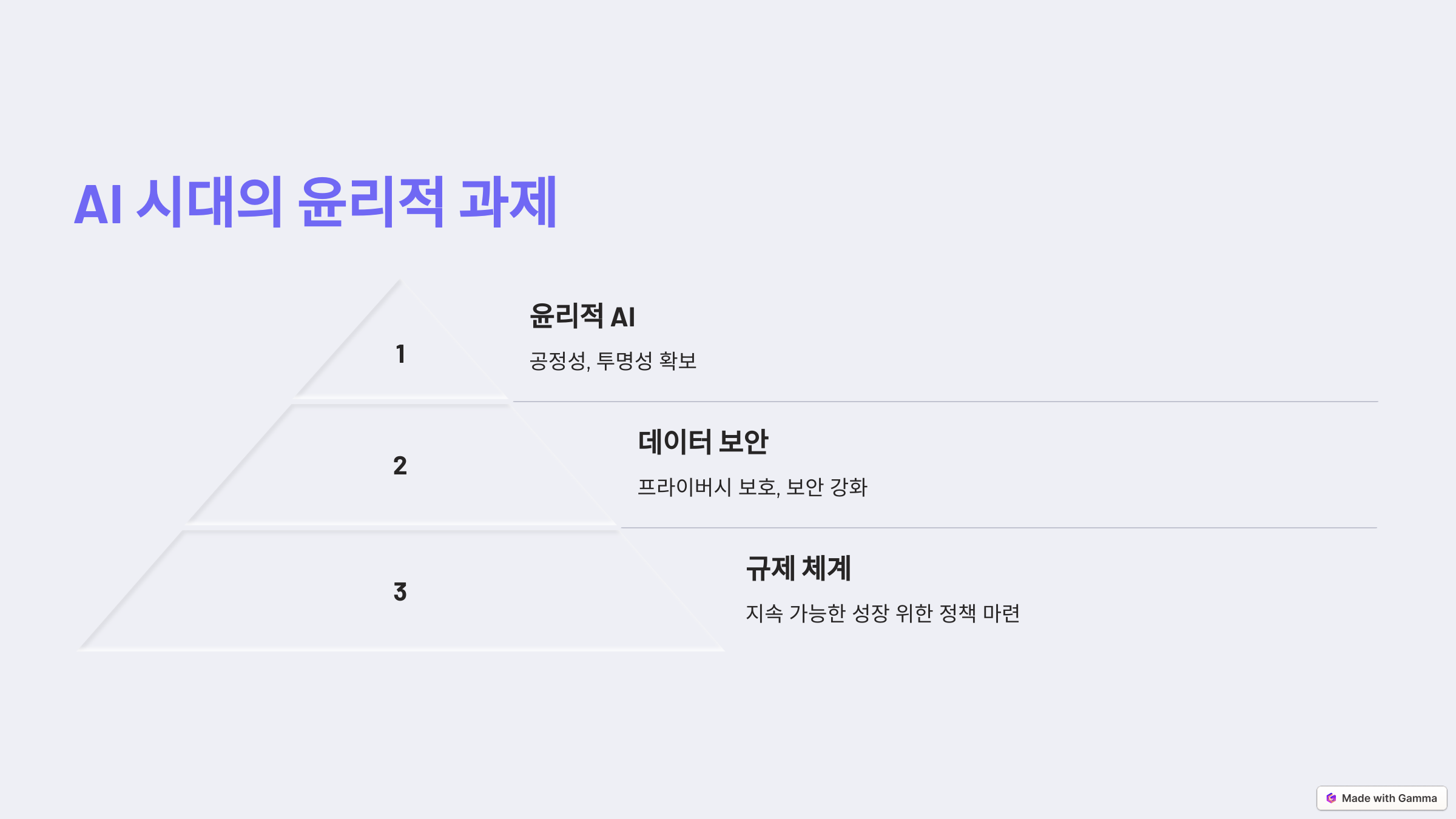 ๋ฐ๋ผ์, AI๊ฐ ๊ฒฝ์ ์ ๊ฐ์ ธ์ฌ ๋ณํ๋ฅผ ํฌ์ฉํ๊ธฐ ์ํด์๋ ๊ธฐ์ ํ์ ๊ณผ ๊ท์ , ๊ทธ๋ฆฌ๊ณ ์ค๋ฆฌ์ ๊ธฐ์ค์ด ๊ท ํ์ ์ด๋ฃจ๋ ์ฒด๊ณ์ ์ธ ์ ๊ทผ์ด ํ์ํฉ๋๋ค. ์ ๋ถ, ๊ธฐ์
