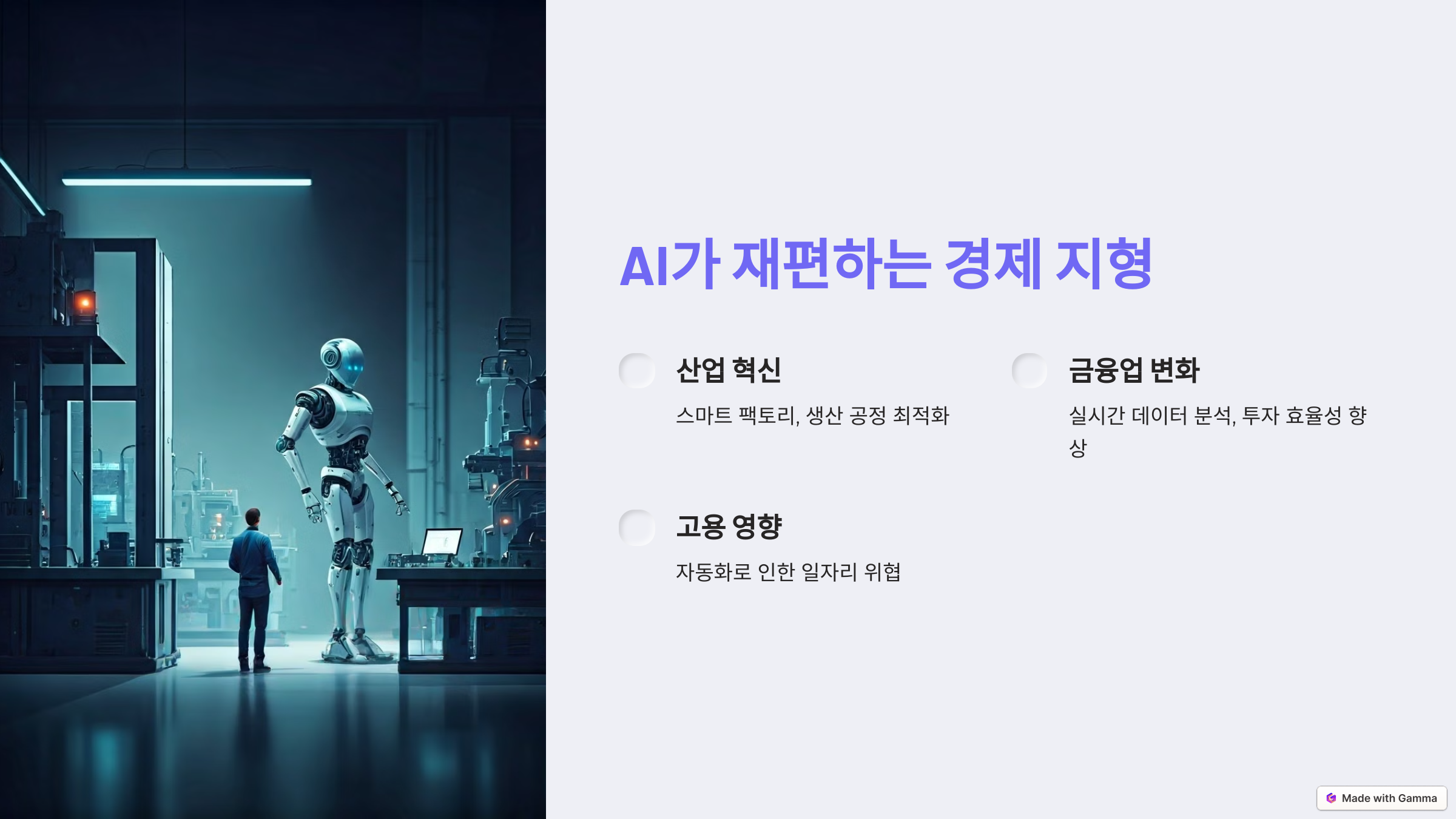 ์ธ๊ณต์ง๋ฅ(AI)์ 21์ธ๊ธฐ ๊ฒฝ์ ์ ๊ฐ์ฅ ์ค์ํ ๋ณํ ๋๋ ฅ์ผ๋ก ์๋ฆฌ ์ก์์ต๋๋ค. ์์ฐ์ฑ๊ณผ ํจ์จ์ฑ์ ํ๊ธฐ์ ์ผ๋ก ํฅ์์ํค๋ AI ๊ธฐ์ ์ ๊ธฐ์ ์ด์๋ถํฐ ๊ฐ์ธ์ ์ผ์์ํ๊น์ง ๋ค์ํ ๋ถ์ผ์ ๊น์์ด ์ค๋ฉฐ๋ค๊ณ ์์ต๋๋ค. 2025๋ ํ์ฌ, AI๋ ๋ ์ด์ ๋จ์ํ ๊ธฐ์ ์ ํ์ ์ ์ฐจ์์ ๋์ด ๊ฒฝ์ ๊ตฌ์กฐ๋ฅผ ๊ทผ๋ณธ์ ์ผ๋ก ์ฌํธํ๊ณ ์์ต๋๋ค. ์ด๋ฌํ ๋ณํ๋ ์ฐ์ ์ ๊ฒฝ๊ณ๋ฅผ ํ๋ฌผ๋ฉฐ ์๋ก์ด ๊ฒฝ์ ์ํ๊ณ๋ฅผ ํ์ฑํ๊ณ ์์ต๋๋ค. ๋ณธ ๊ธ์์๋ AI๊ฐ ๊ฒฝ์ ์ ๋ฏธ์น๋ ์ํฅ์ ์ดํด๋ณด๊ณ , ๊ทธ ์ค์ฌ์ ์๋ ๋์ ๊ณผ ๊ธฐํ๋ฅผ ๋ถ์ํ๊ณ ์ ํฉ๋๋ค.